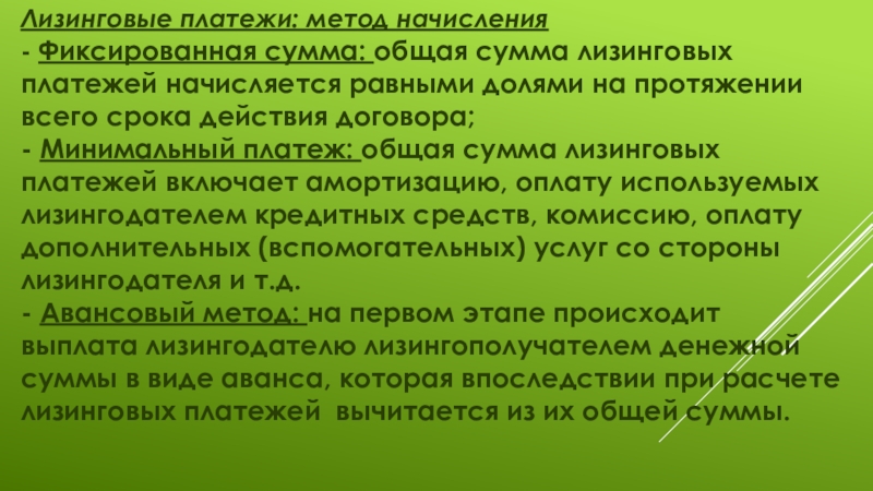 Слайд 1Лизинговые платежи и порядок их расчета