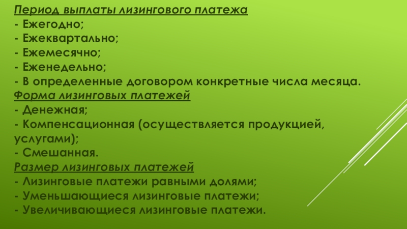 Слайд 3Период выплаты лизингового платежа