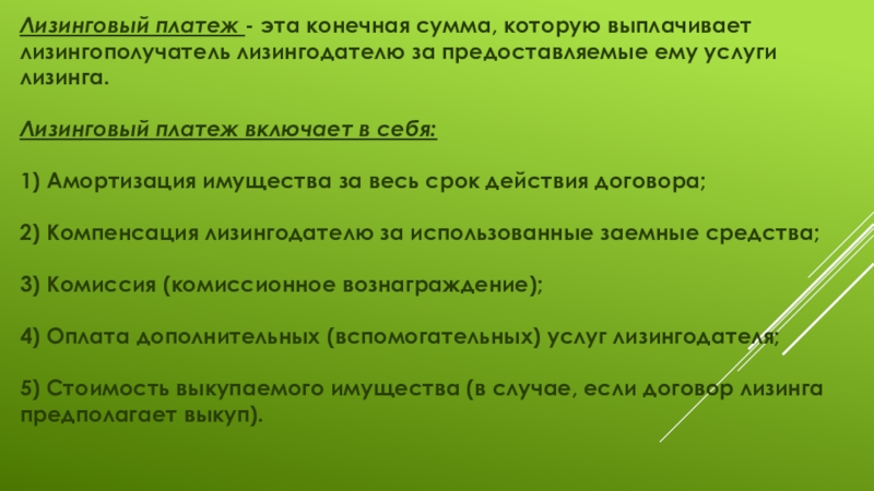 Слайд 2Лизинговый платеж - эта конечная сумма, которую выплачивает лизингополучатель лизингодателю за
