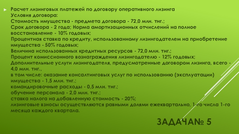Расчет лизинговых платежей по договору оперативного лизинга