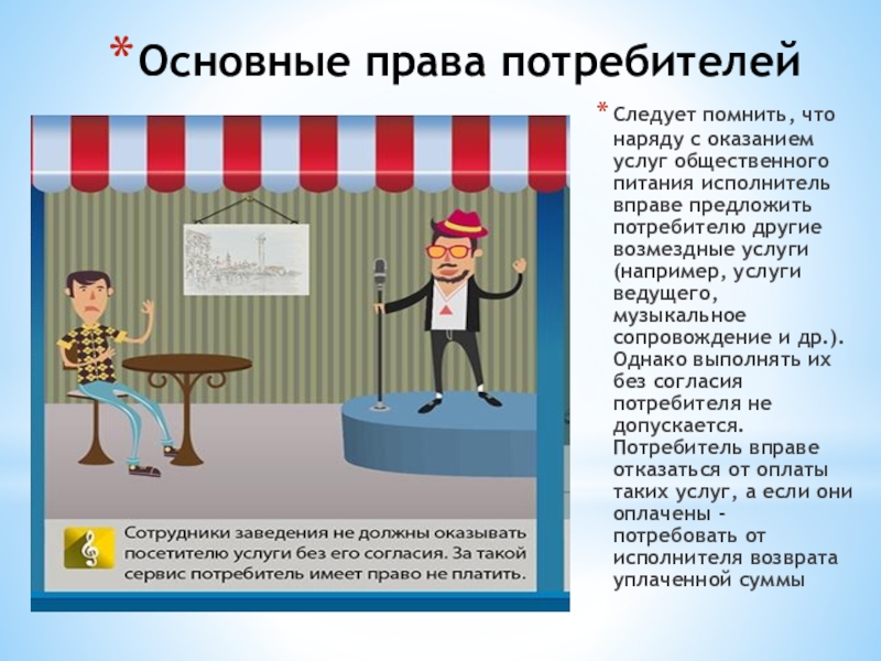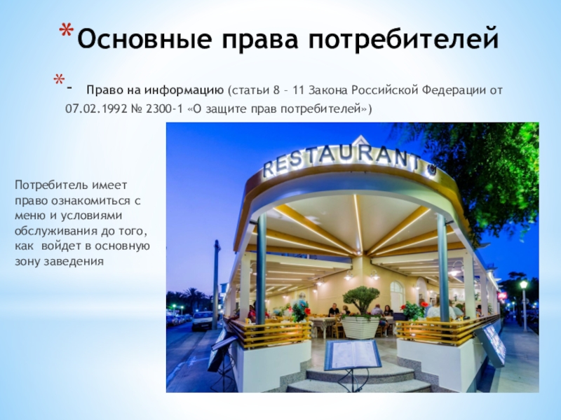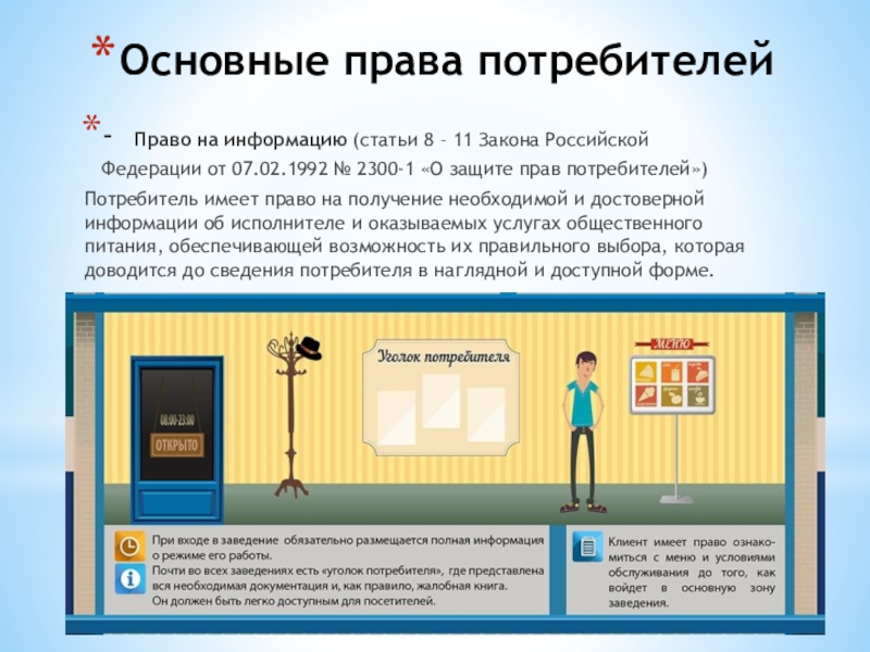 Потребитель имеет право ознакомиться с меню и условиями обслуживания до того, как войдет в основную зону заведения
