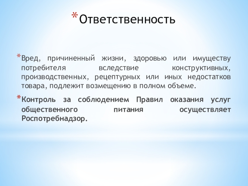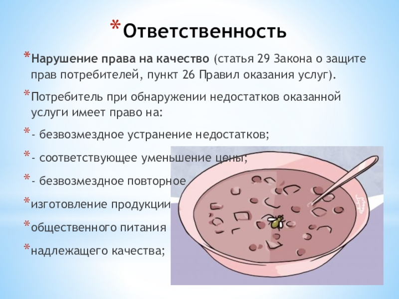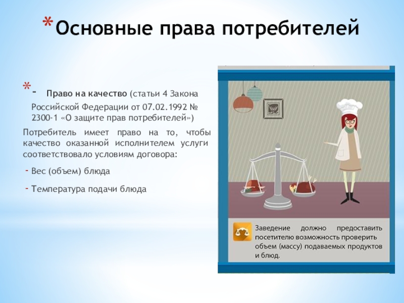 Потребитель имеет право на то, чтобы услуга была безопасна для жизни, здоровья потребителя, имущества.