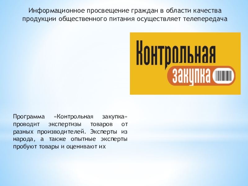 Информационное просвещение граждан в области качества продукции общественного питания осуществляет телепередача