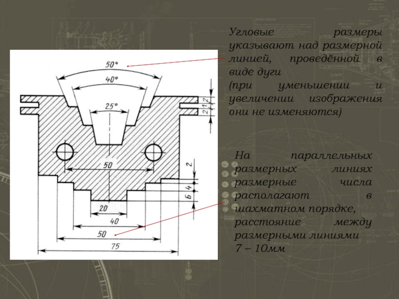 На параллельных размерных линиях размерные числа располагают в шахматном порядке,