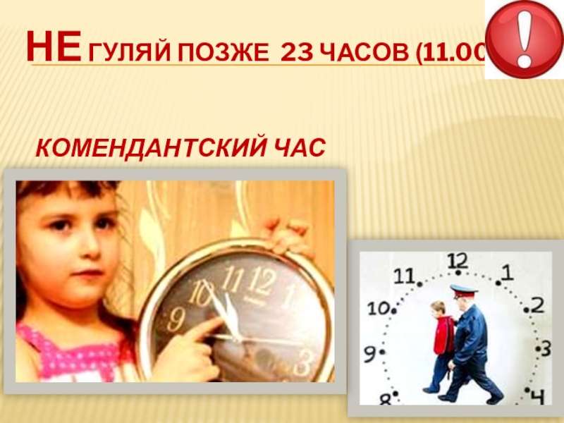 Слайд 2 Не гуляй позже 23 часов (11.00 ч.)