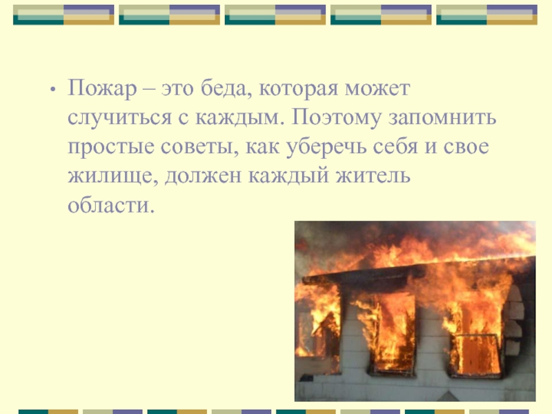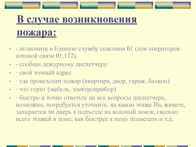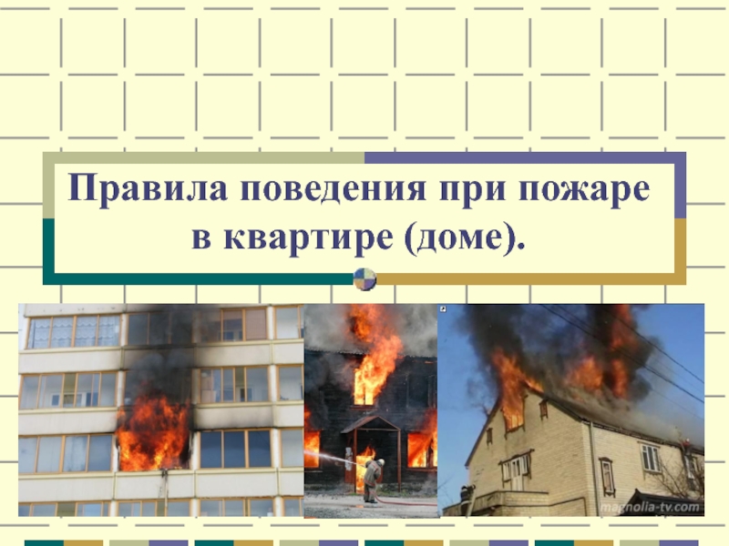 Слайд 1Правила поведения при пожаре в квартире (доме).