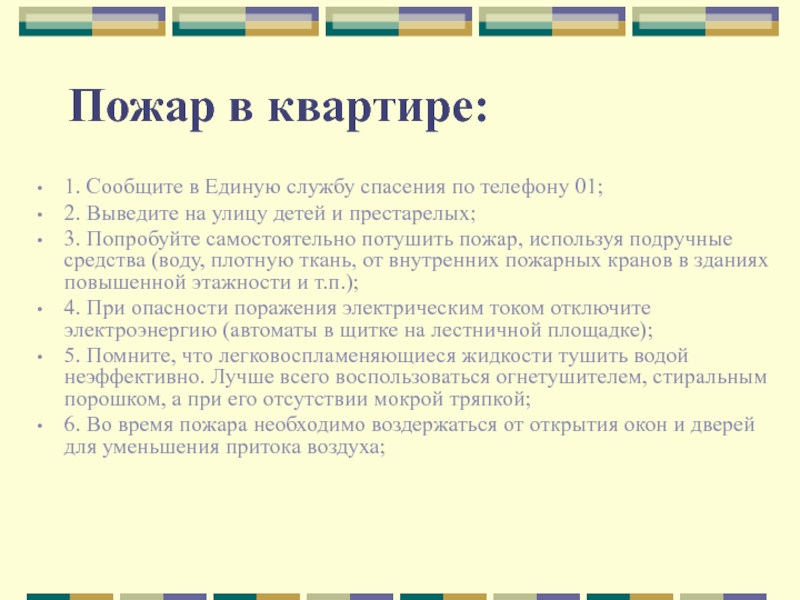 6. Во время пожара необходимо воздержаться от открытия окон и дверей для уменьшения притока воздуха;