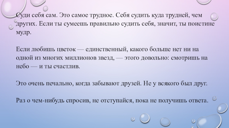 Слайд 5Суди себя сам. Это самое трудное. Себя судить куда трудней, чем