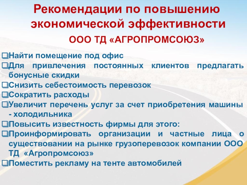 (Организационная и экономическая характеристика ООО ТД «Агропромсоюз» . Разработка рекомендаций по повышению эффективности предприятия)