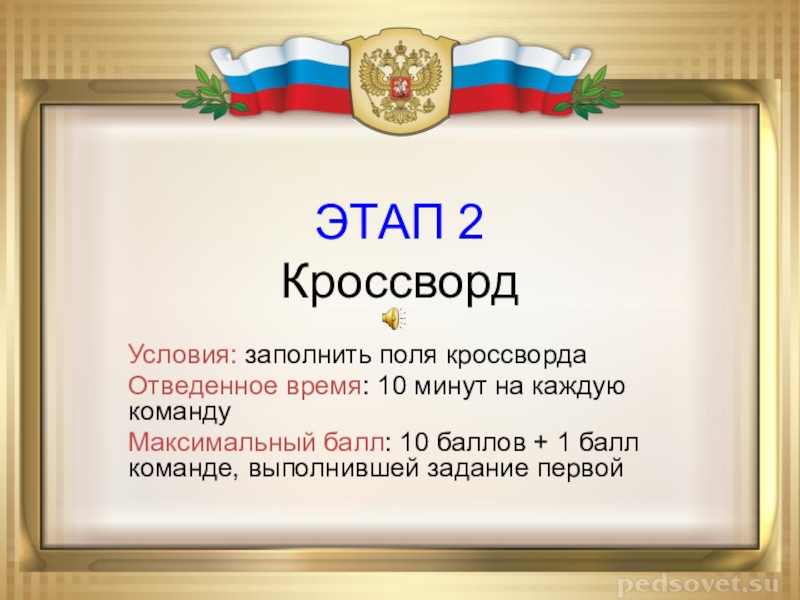 ЭТАП 2 КроссвордУсловия: заполнить поля кроссвордаОтведенное время: 10 минут на каждую командуМаксимальный балл: 10 баллов + 1