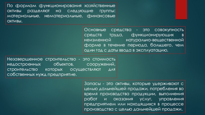 Основные средства - это совокупность средств труда, функционирующих в неизменной натурально-вещественной форме в течение периода, большего, чем один год с даты ввода в эксплуатацию.
