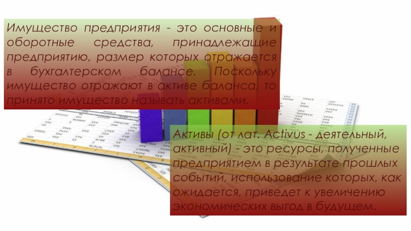 Активы (от лат. Activus - деятельный, активный) - это ресурсы, полученные предприятием в результате прошлых событий, использование которых, как ожидается, приведет к увеличению экономических выгод в будущем.