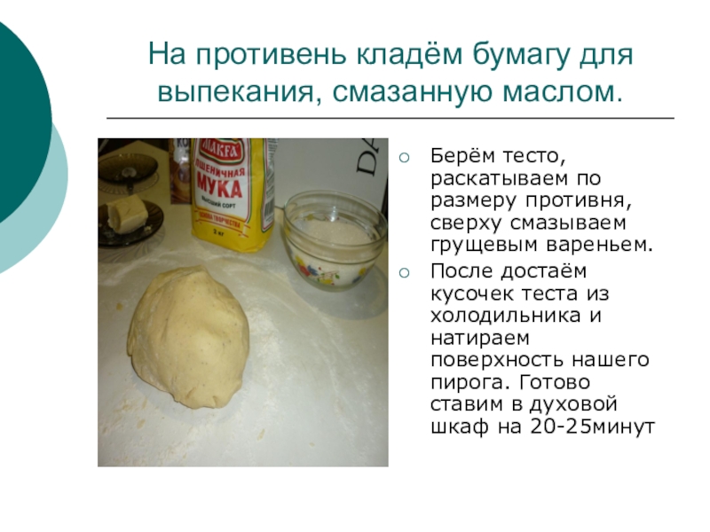 Слайд 16На противень кладём бумагу для выпекания, смазанную маслом.