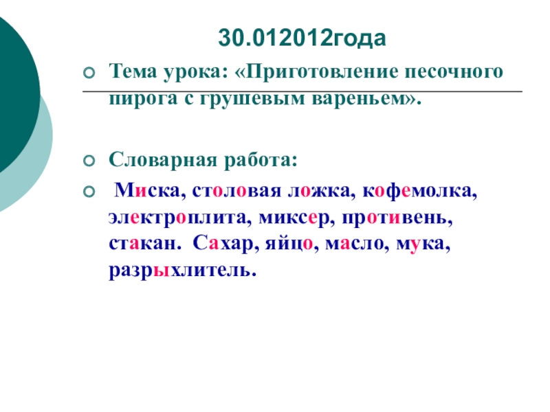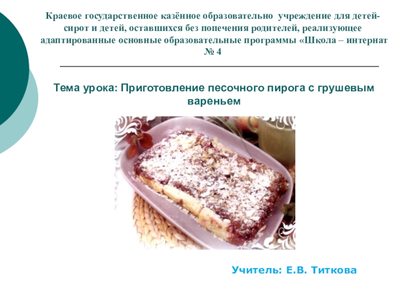 Тема урока: «Приготовление песочного пирога с грушевым вареньем».