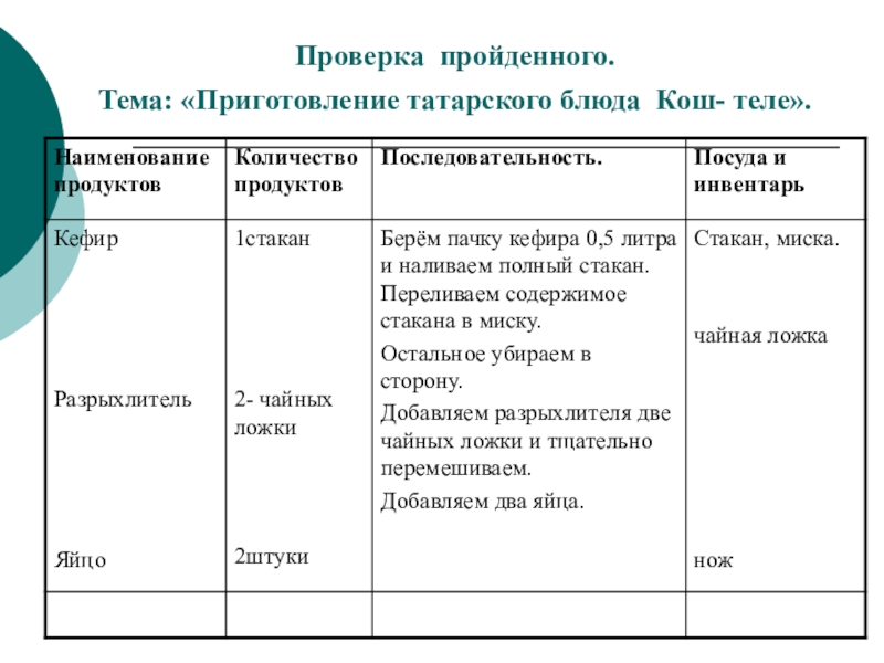 Тема: «Приготовление татарского блюда Кош- теле».