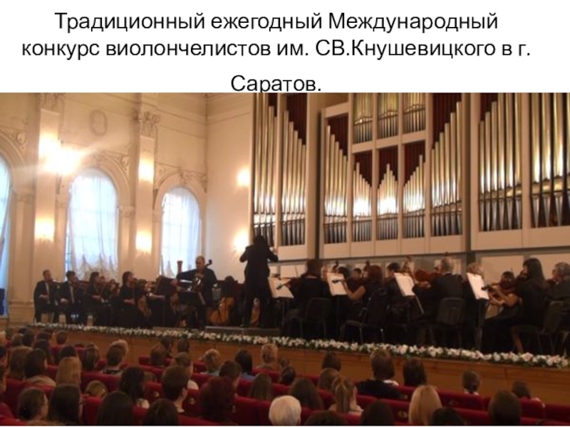 Слайд 19Традиционный ежегодный Международный конкурс виолончелистов им. СВ.Кнушевицкого в г.Саратов.