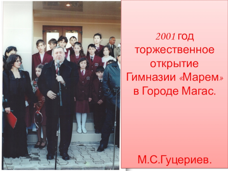 2001 год торжественное открытиеГимназии «Марем» в Городе Магас.М.С.Гуцериев.