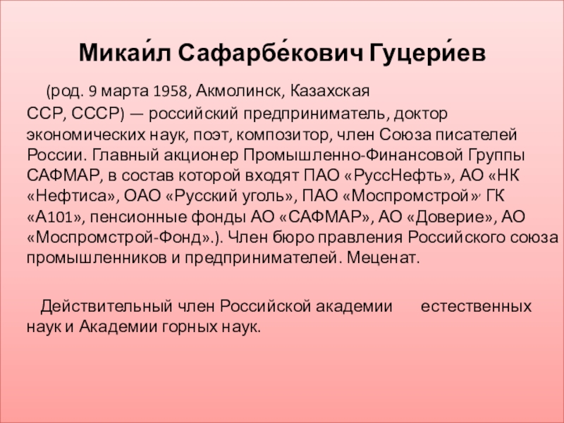 Презентация, доклад на тему Предприниматель.Меценат. М.С.Гуцериев