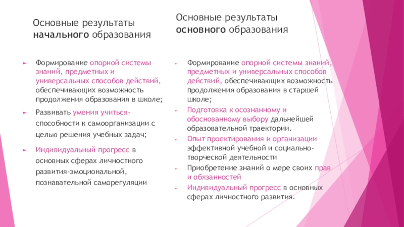 Основные результаты основного образования