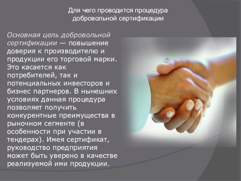 Слайд 6Для чего проводится процедура добровольной сертификации
