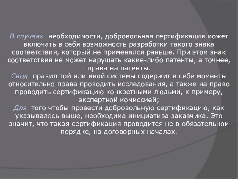 Слайд 5В случаях необходимости, добровольная сертификация может включать в себя возможность разработки