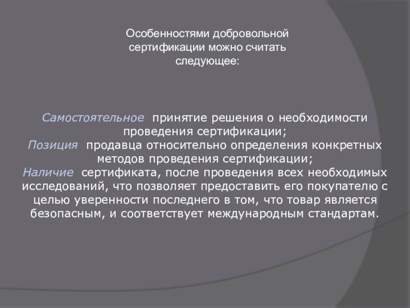 Слайд 7Особенностями добровольной сертификации можно считать следующее: