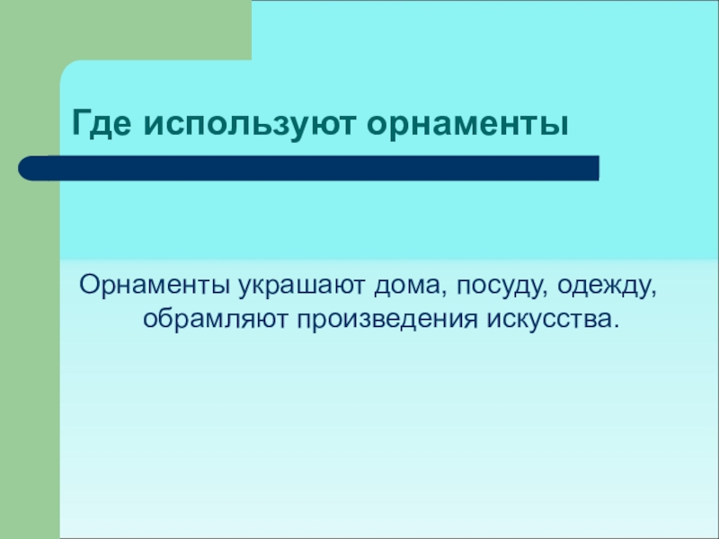 Где используют орнаментыОрнаменты украшают дома, посуду, одежду, обрамляют произведения искусства.