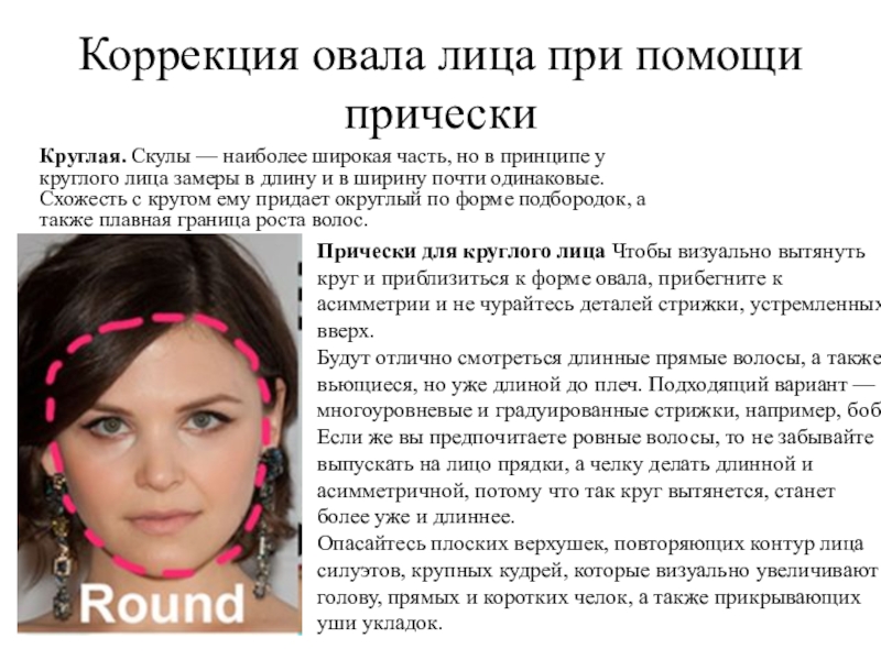 Если же вы предпочитаете ровные волосы, то не забывайте выпускать на лицо прядки, а челку делать длинной и асимметричной, потому что так круг вытянется, станет более уже и длиннее.