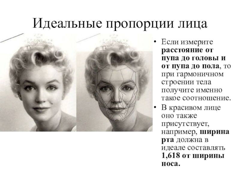 Ученые прошлых веков решили вывести некую формулу идеального лица, которое бы считалось эталоном красоты. Таким образом, появились волшебные пропорции 1:1,618, а также такое понятие, как маска золотого сечения.