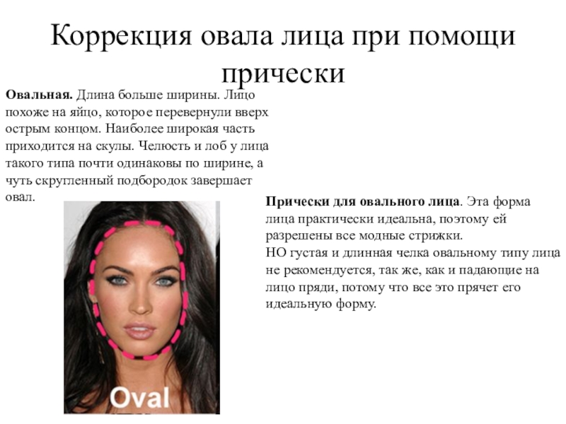 НО густая и длинная челка овальному типу лица не рекомендуется, так же, как и падающие на лицо пряди, потому что все это прячет его идеальную форму.