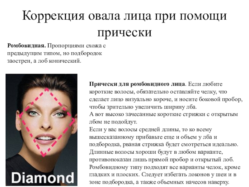 Ромбовидная. Пропорциями схожа с предыдущим типом, но подбородок заострен, а лоб конический.