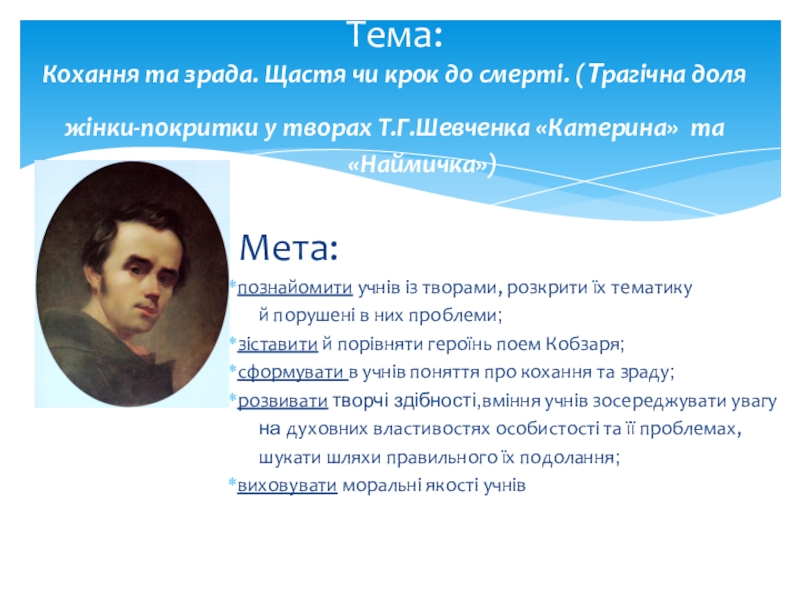 Кохання та зрада. Щастя чи крок до смерті. (Трагічна доля жінки-покритки у творах Т.Г.Шевченка «Катерина» та