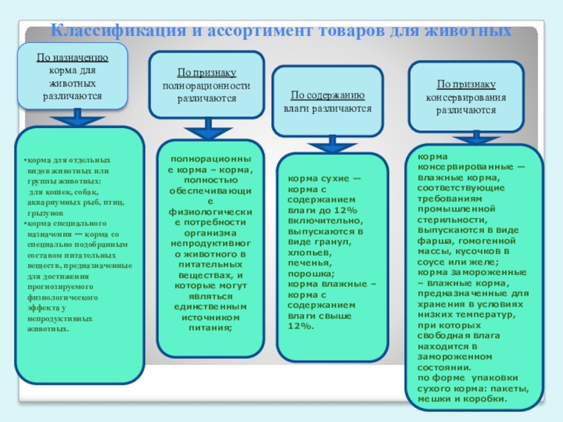 корма консервированные — влажные корма, соответствующие требованиям промышленной стерильности, выпускаются в виде фарша, гомогенной массы, кусочков в соусе или желе;