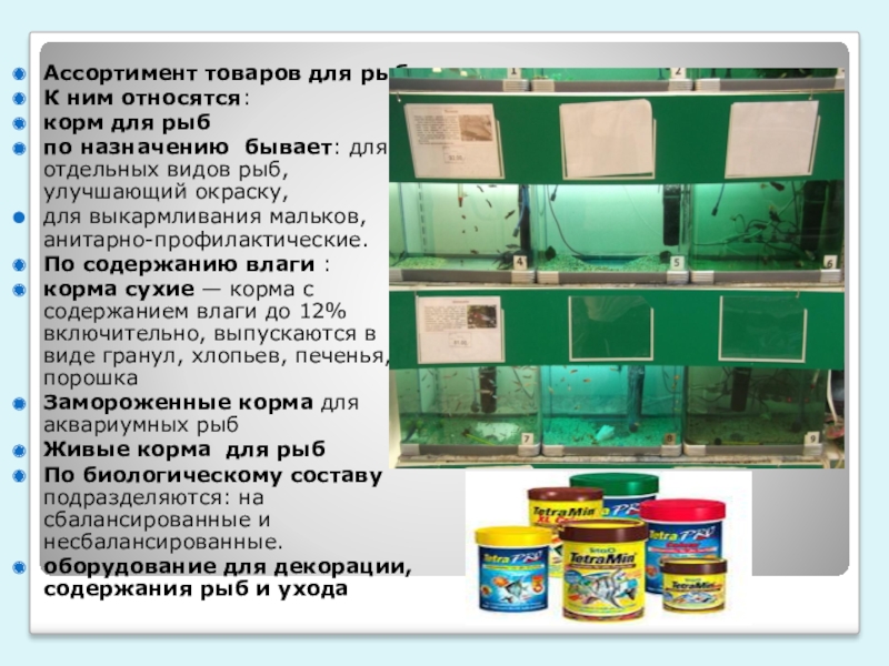 корма сухие — корма с содержанием влаги до 12% включительно, выпускаются в виде гранул, хлопьев, печенья, порошка;