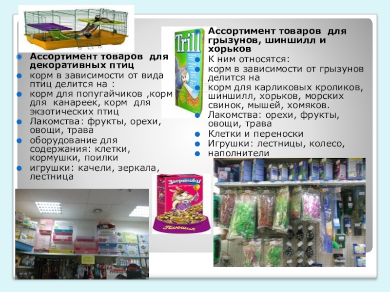 Ассортимент товаров для грызунов, шиншилл и хорьков