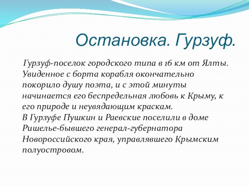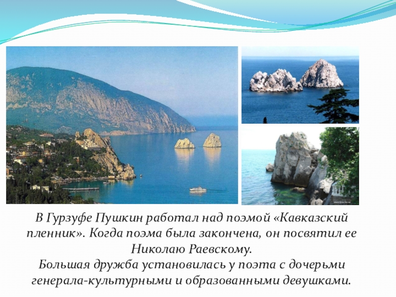Слайд 10В Гурзуфе Пушкин работал над поэмой «Кавказский пленник». Когда поэма была