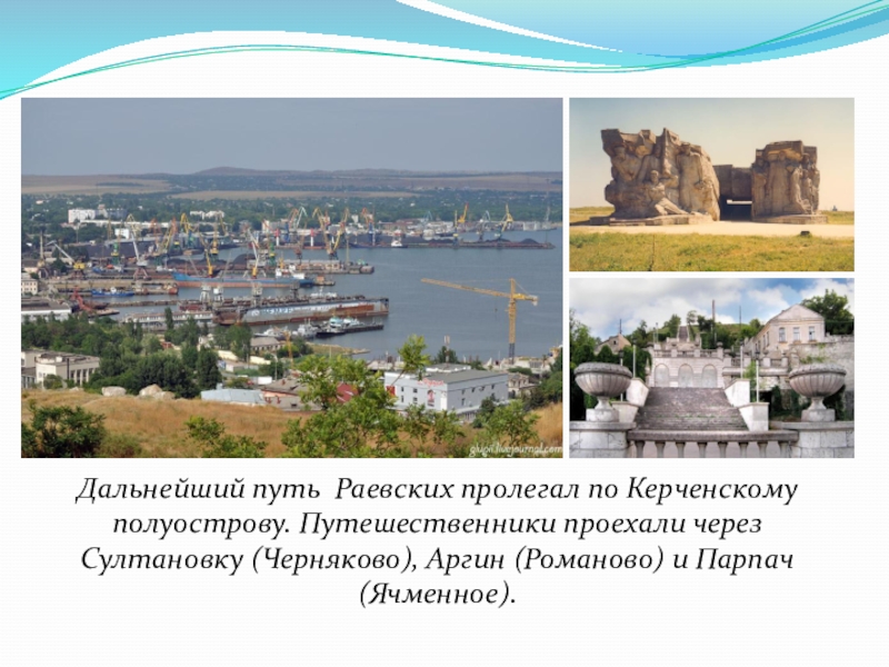 Дальнейший путь Раевских пролегал по Керченскому полуострову. Путешественники проехали через