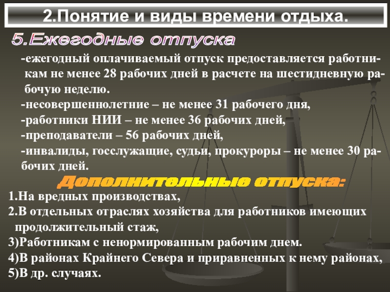 1.Перерыв для отдыха и питания в течение рабочего дня.