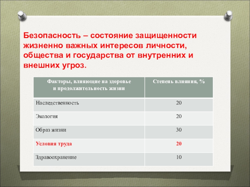 Слайд 21Безопасность – состояние защищенности жизненно важных интересов личности, общества и государства