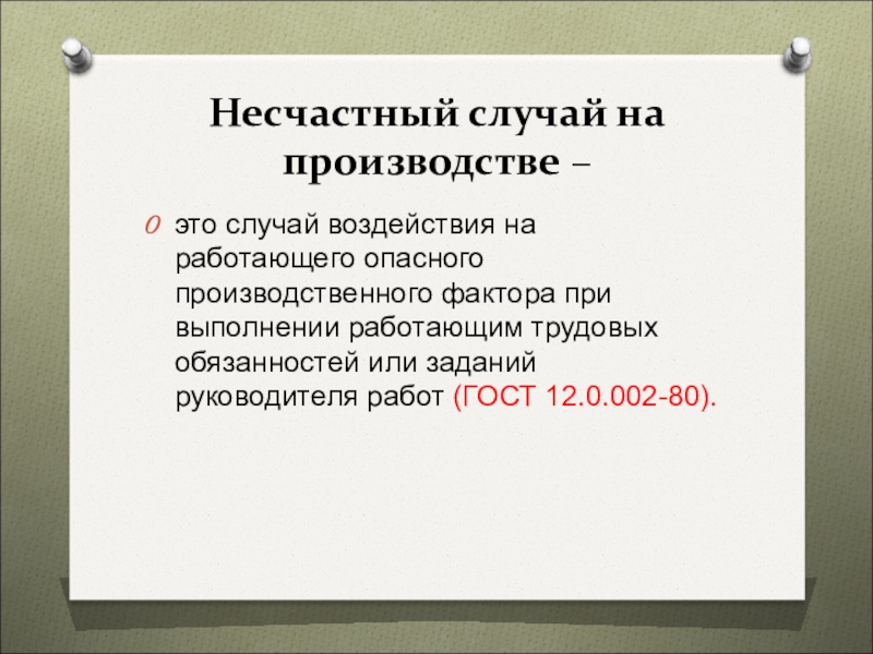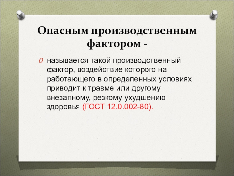 фактора при выполнении работающим трудовых обязанностей или заданий руководителя работ (ГОСТ 12.0.002-80).