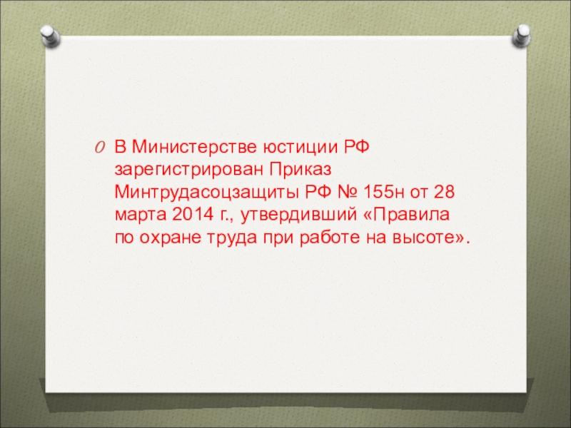 28 марта 2014 г., утвердивший «Правила по охране труда при работе на высоте».