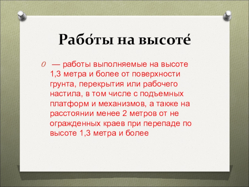 — работы выполняемые на высоте 1,3 метра и более от поверхности
