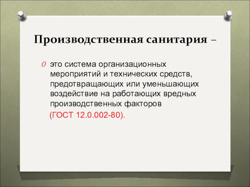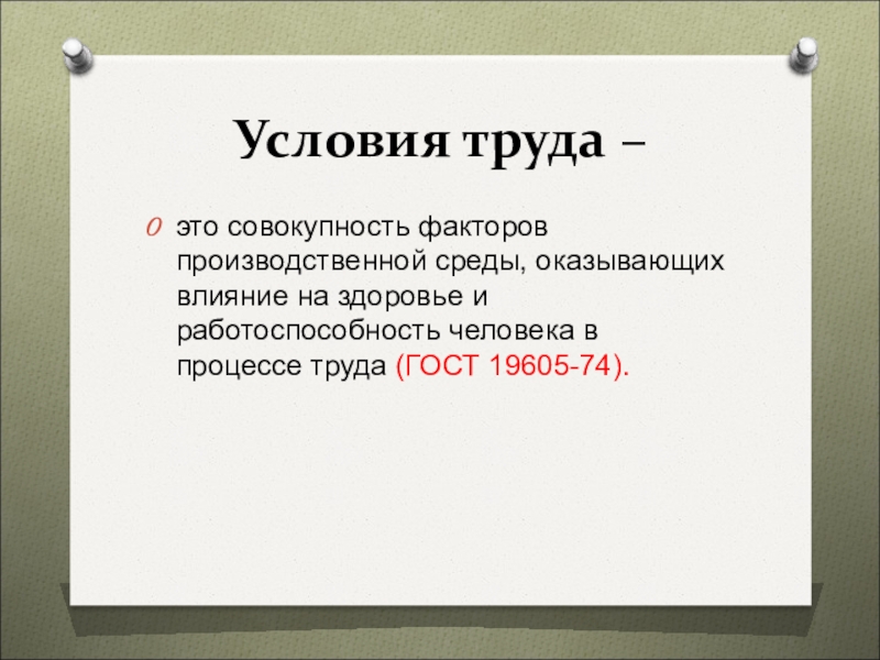 это совокупность факторов производственной среды, оказывающих влияние на здоровье