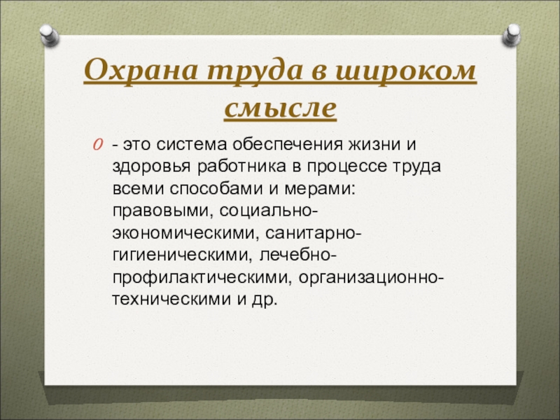 здоровья работника в процессе труда всеми способами и мерами: правовыми, социально-экономическими, санитарно-гигиеническими, лечебно-профилактическими, организационно-техническими и др.