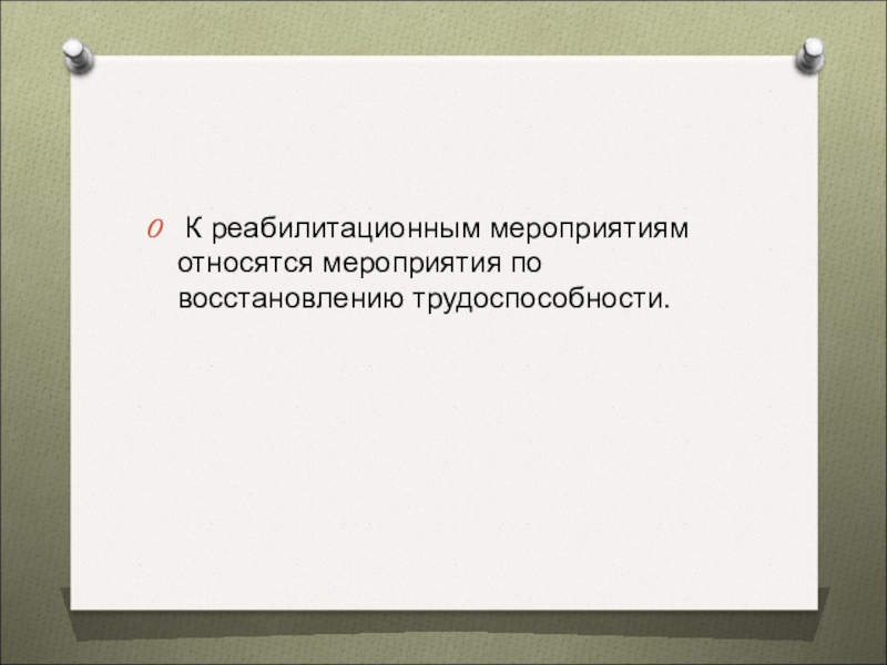 К реабилитационным мероприятиям относятся мероприятия по восстановлению трудоспособности.