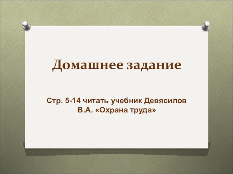 Стр. 5-14 читать учебник Девясилов В.А. «Охрана труда»