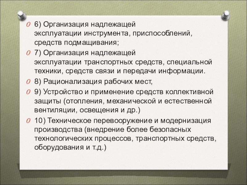 10) Техническое перевооружение и модернизация производства (внедрение более безопасных технологических процессов, транспортных средств, оборудования и т.д.)