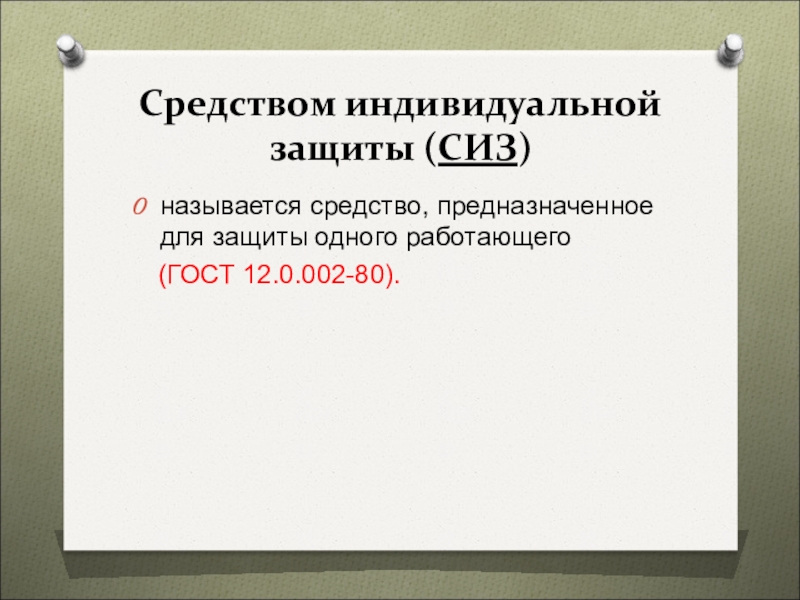 Слайд 40Средством индивидуальной защиты (СИЗ)