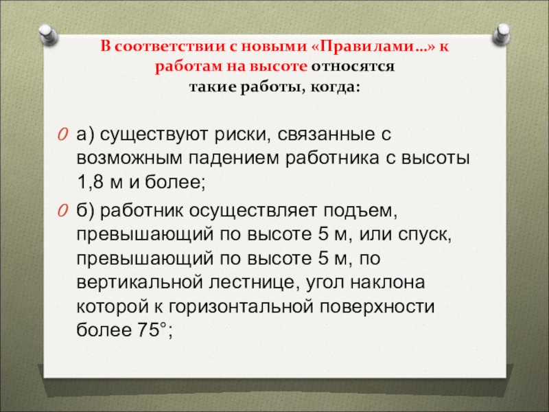 Слайд 30В соответствии с новыми «Правилами…» к работам на высоте относятся