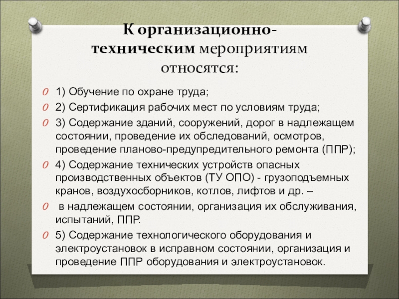 Слайд 12К организационно-техническим мероприятиям относятся: